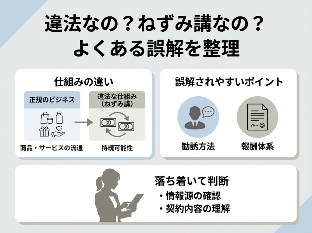 「マルチ=違法」と思われがちですが、ここは分けて考える必要があります。