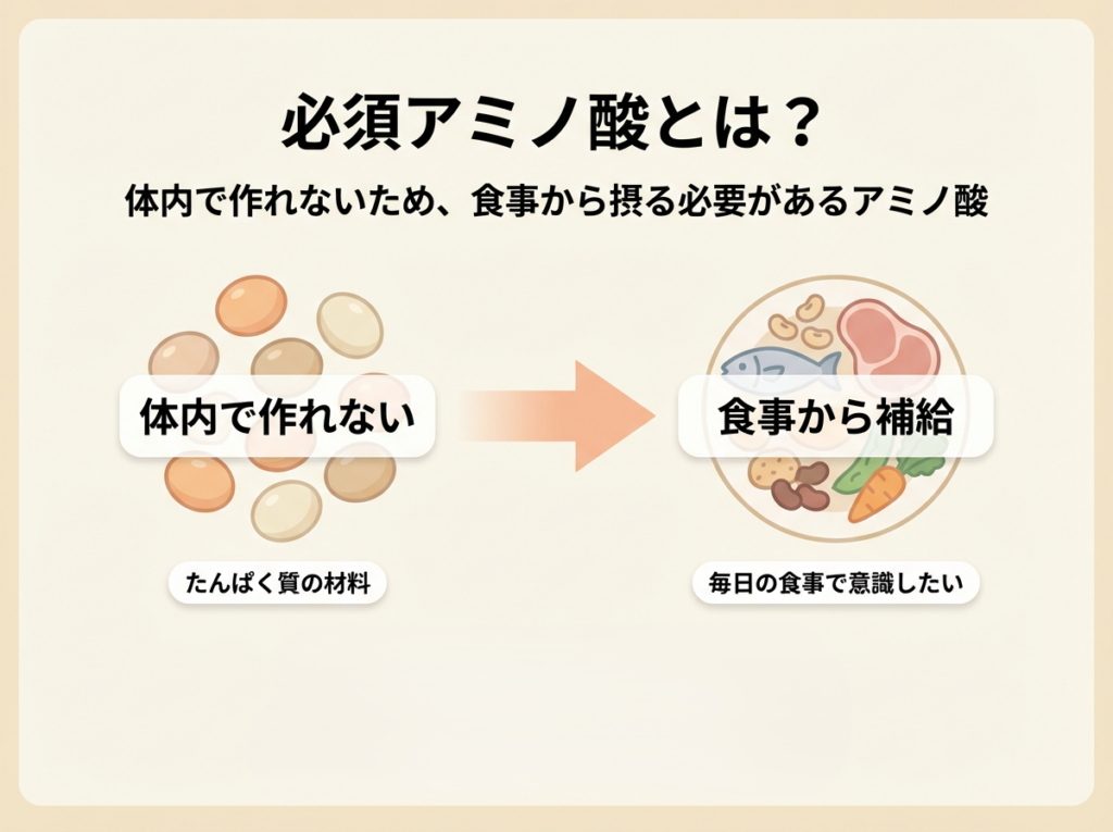 必須アミノ酸を効率よく食事から補給する必要があります。