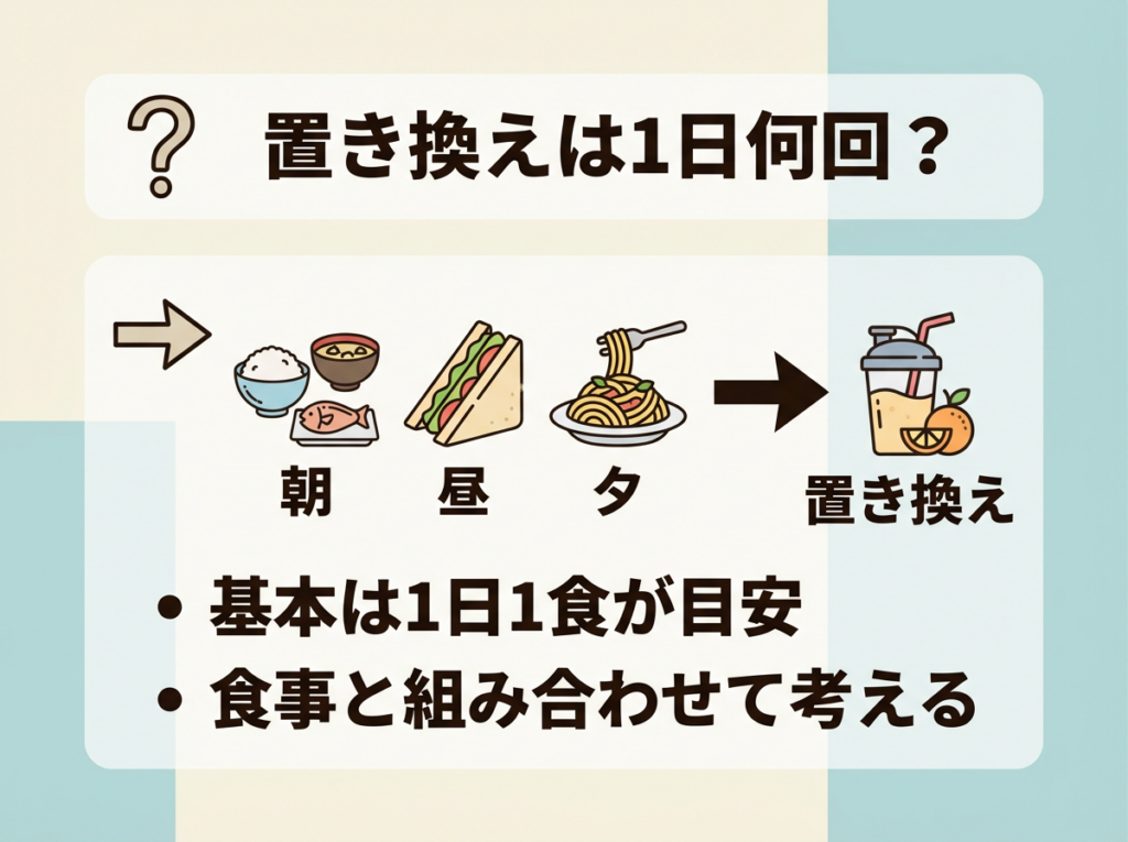 置き換えは1日1食が目安です。飲みすぎると栄養不足やカロリー過多、ビタミンAの過剰摂取の可能性もあるため注意が必要です。
