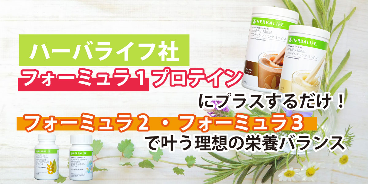 ハーバライフ フォーミュラ1 プロテイン ドリンク ミックスにプラスするだけ!フォーミュラ2 ハーバルブレンド アドバンスとフォーミュラ3 ビタミン&ミネラルアドバンスで叶う理想の栄養バランス