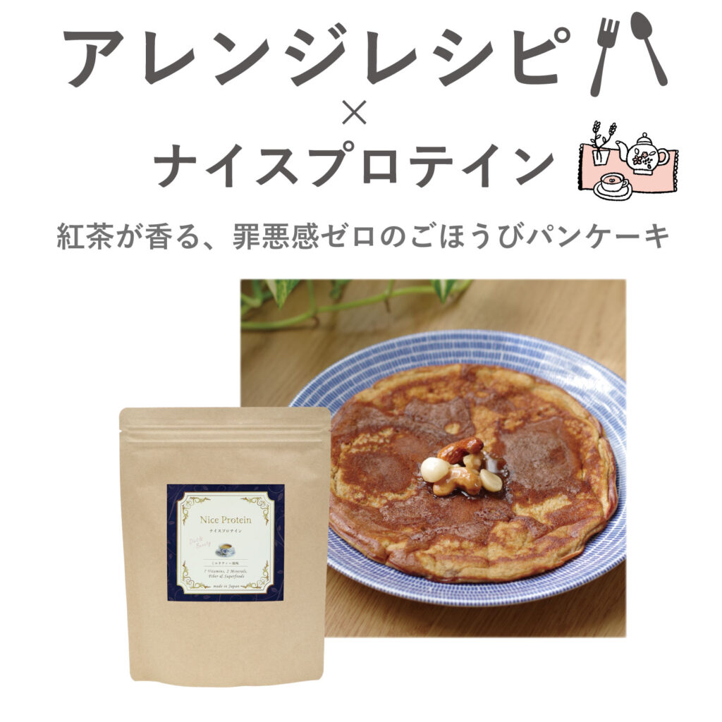 ミルクティー味のソイプロテインで作る、ふわもち食感のヘルシーパンケーキ。
