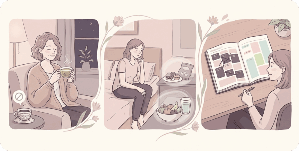 どうしても小腹が空く日は無理せずOK。まずは「寝る前だけ避ける」を目標にします。