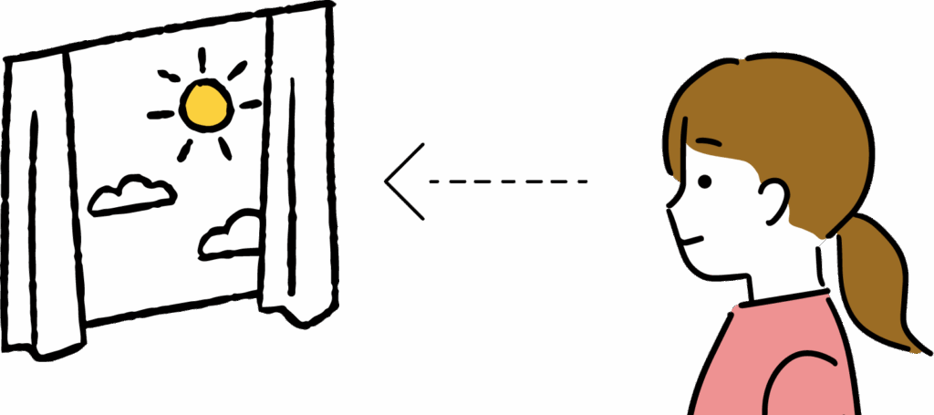 ①顔は動かさず、目だけで遠くを見る(窓の外、壁の一番遠い点など)