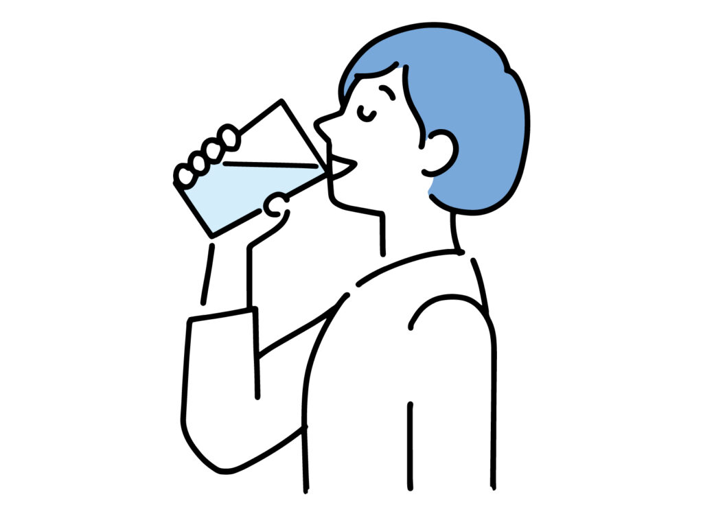 一気にたくさん飲むより、少しずつ飲む方が、のどの乾きを感じにくく、無理なく続けやすいです。コーヒーや緑茶などカフェイン入りの飲み物が多い日は、合間に水や白湯を飲みましょう。