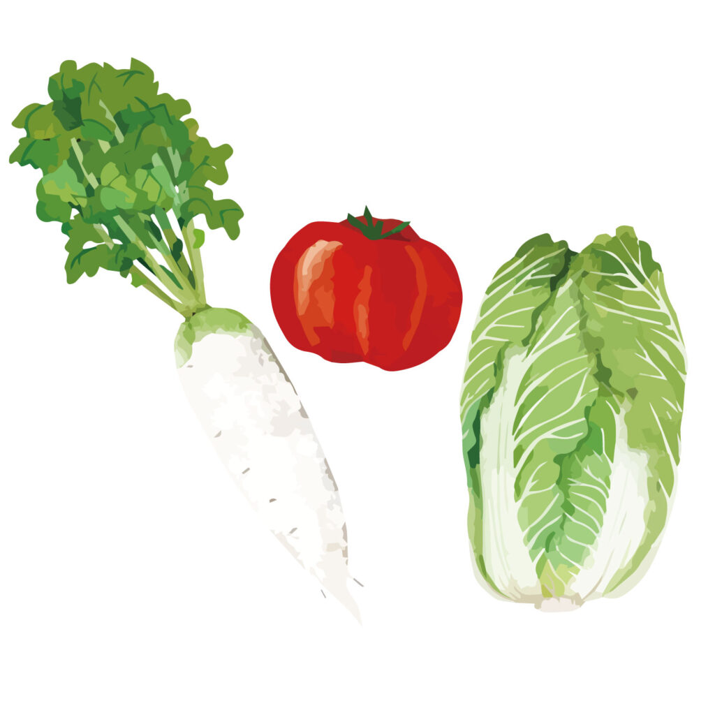 白菜・大根・きゅうり・トマトなどの野菜は水分を多く含みます。
