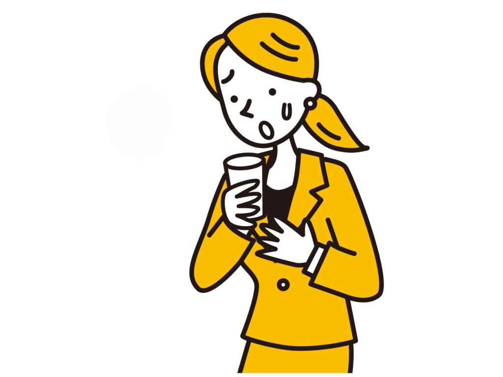 一気にたくさん飲むより、少しずつ飲む方が、のどの乾きを感じにくく、無理なく続けやすいです。コーヒーや緑茶などカフェイン入りの飲み物が多い日は、合間に水や白湯を飲みましょう。