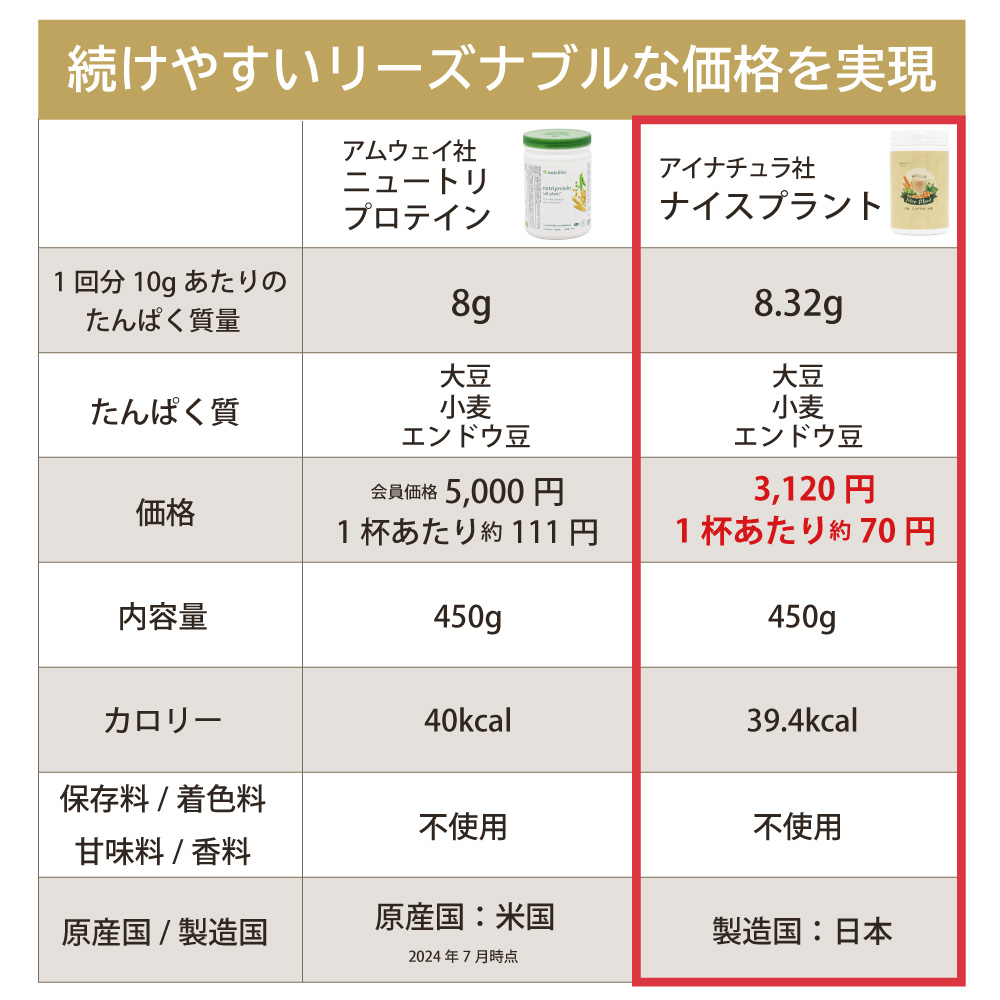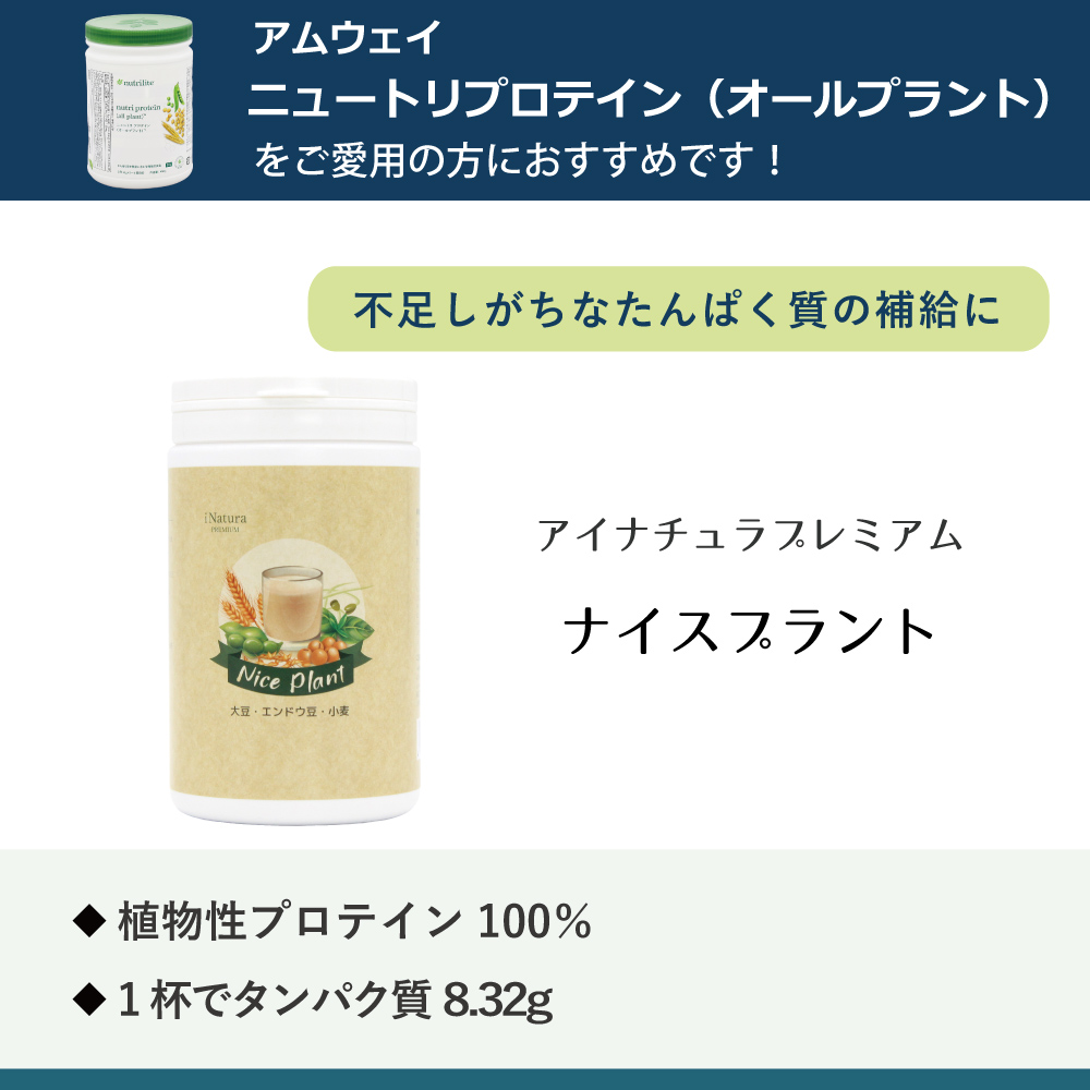 アイナチュラ社ナイスプラントはどんなプロテイン?アムウェイ社ニュートリプロテイン(オールプラント)との違いなどを丁寧にQ&Aで紹介