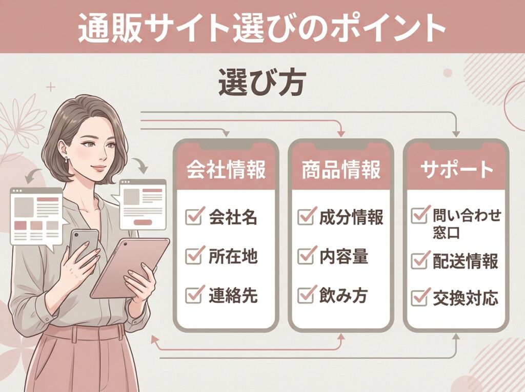 通販サイトを探す場合、次のポイントを確認しておくと安心です。