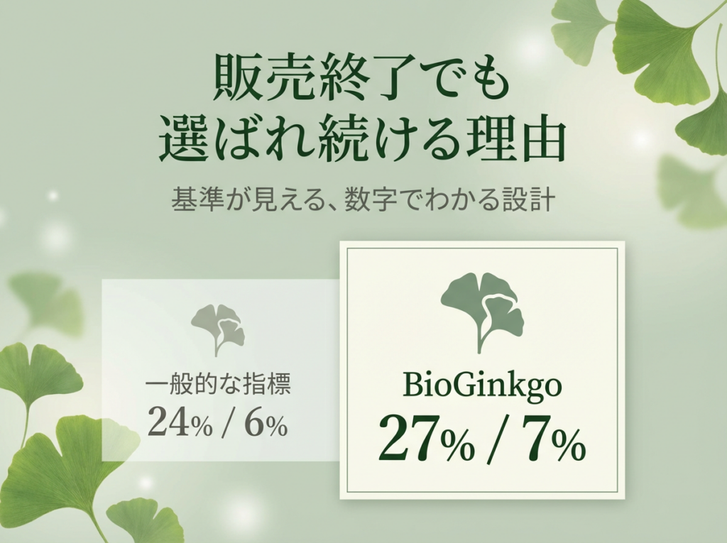 • バイオギンコはイチョウ葉エキスの規格(27%/7%)など判断材料が数字で見える設計。