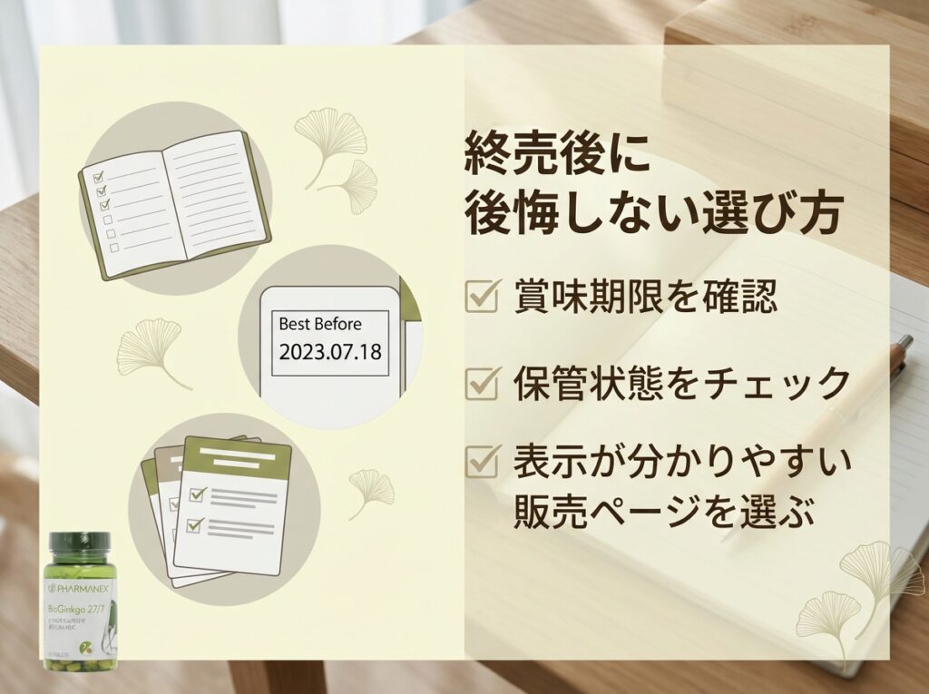 販売終了後の製品の購入で一番多い失敗は、成分や価格以前に、情報不足のまま買ってしまうことです。終売品は「最安」よりも、安心材料が揃っているかで選ぶと失敗しにくくなります。