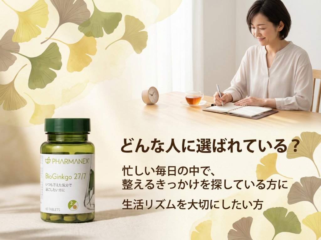 だからこそ、いまの自分の生活に無理なくできるものを探す中で、ニュースキンのバイオギンコにたどり着く方が少なくありません。