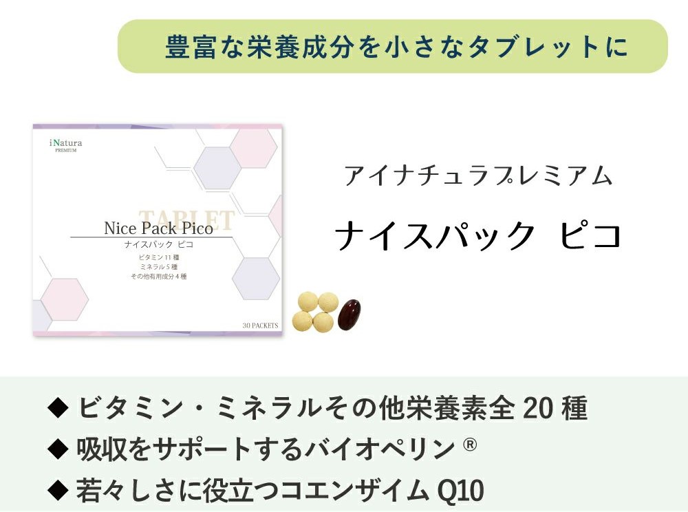 アイナチュラ社のアイナチュラプレミアム「ナイスパック」&「ナイスパック ピコ」