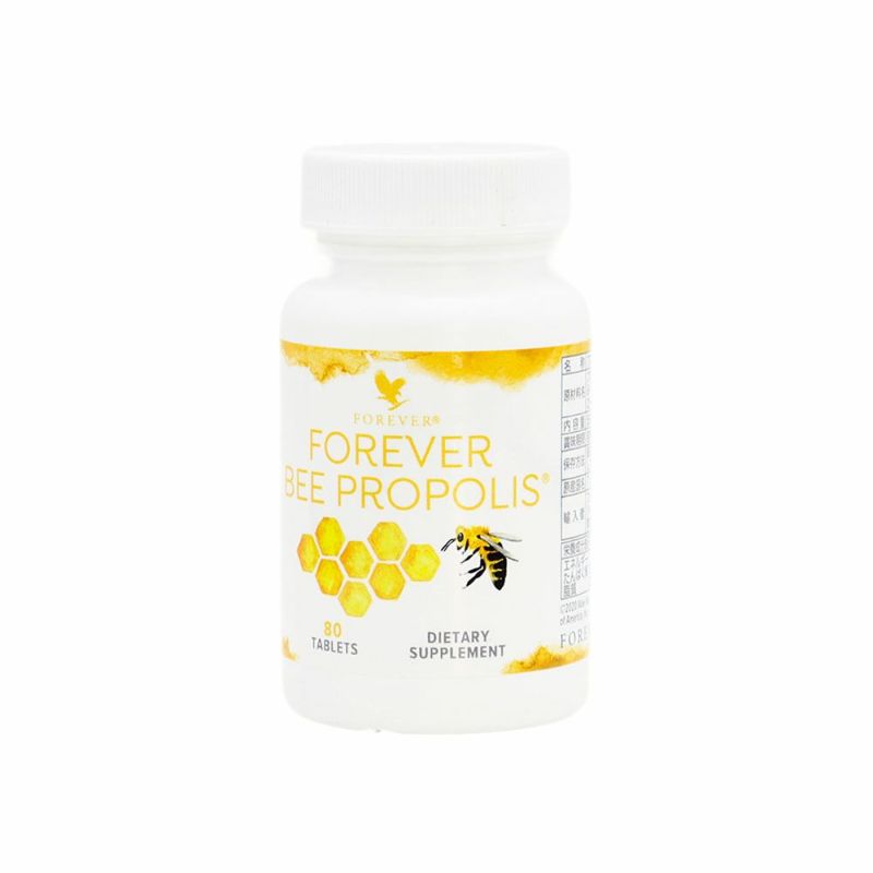 プロポリスは木の樹脂や木の芽などに、ミツバチが自分の分泌物を加えて作る貴重な物質。巣の中の細菌の増殖を防ぎ、巣を補修するために使われ、ミツバチ自身の健康維持にも役立ちます。市販のプロポリスには、アルコールや水などで抽出した製品があります。フォーエバーのビープロポリスは、天然のプロポリスそのものを用い、美味しくいただけるようにハチミツやアーモンドフレーバーを加えて食べやすくしました。