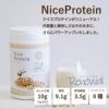 ハーバライフ社の「フォーミュラ1 プロテインドリンク ミックス」をご愛用の方へオススメするアイナチュラ社製の「ナイスプロテイン(バニラ)」。