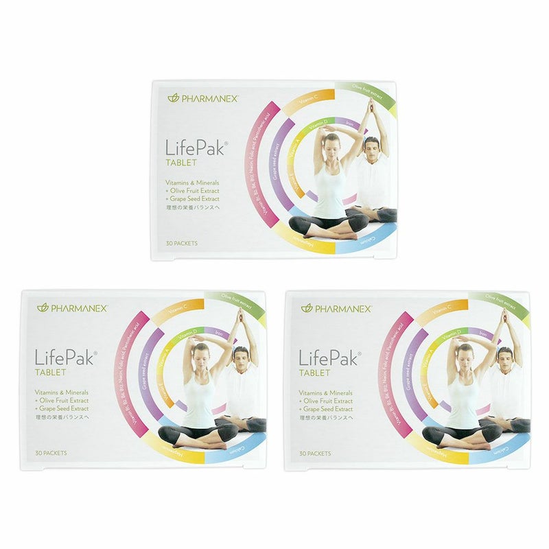 カプセルタイプのライフパックと同量のビタミンミネラルに加え、ポリフェノールを含んだブドウ種子エキスやオリーブ果実抽出物を配合しました。